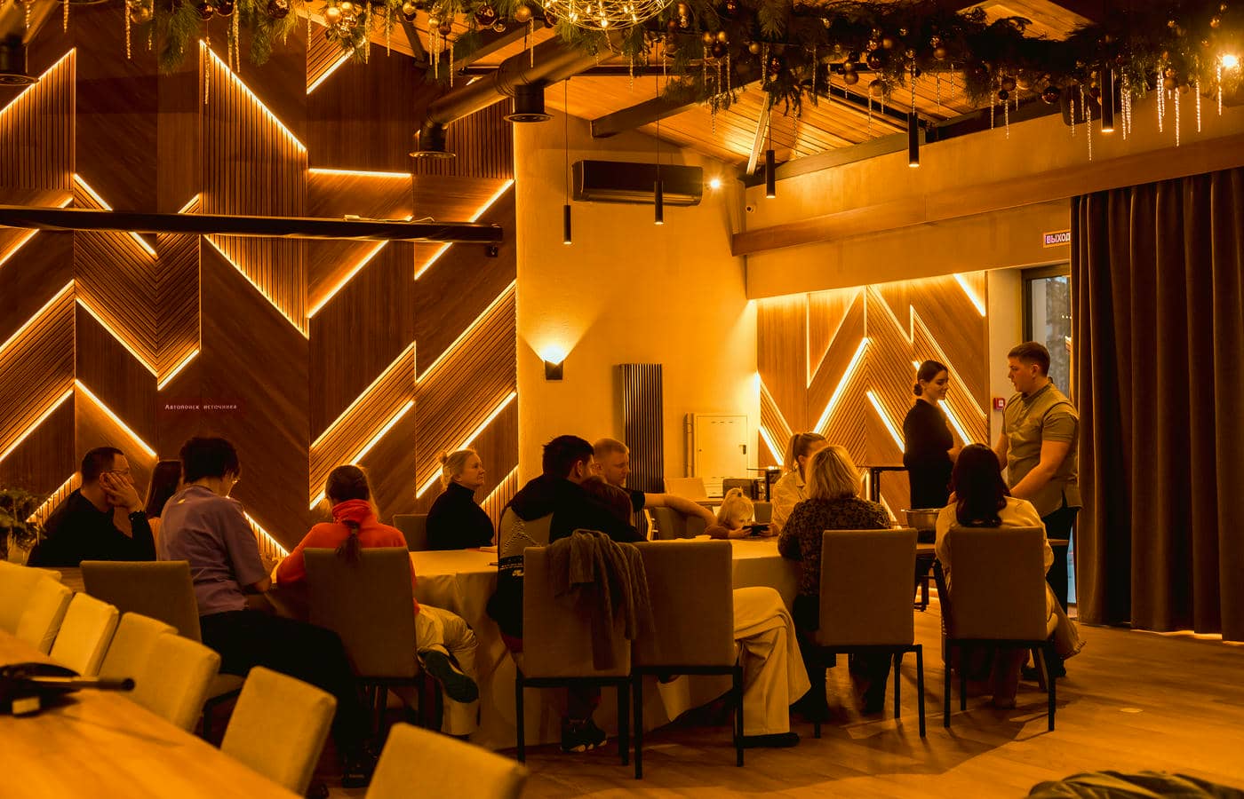 Праздничный ужин в ресторане под живой звук фортепиано.