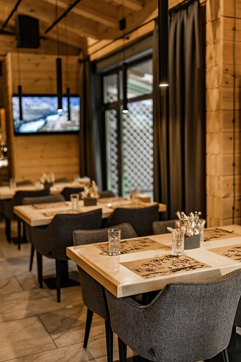 Знакомство с Алтайским краем будет неполным, если вы не оценили кулинарные шедевры местной кухни. Панорамный ресторан авторской кухни «Сосны» расположен на 1 этаже отеля и предлагает своим гостям не только гастрономическое путешествие, но и завораживающие виды алтайского пейзажа. Здесь начинается каждое утро для гостей Grand Chalet Altay.