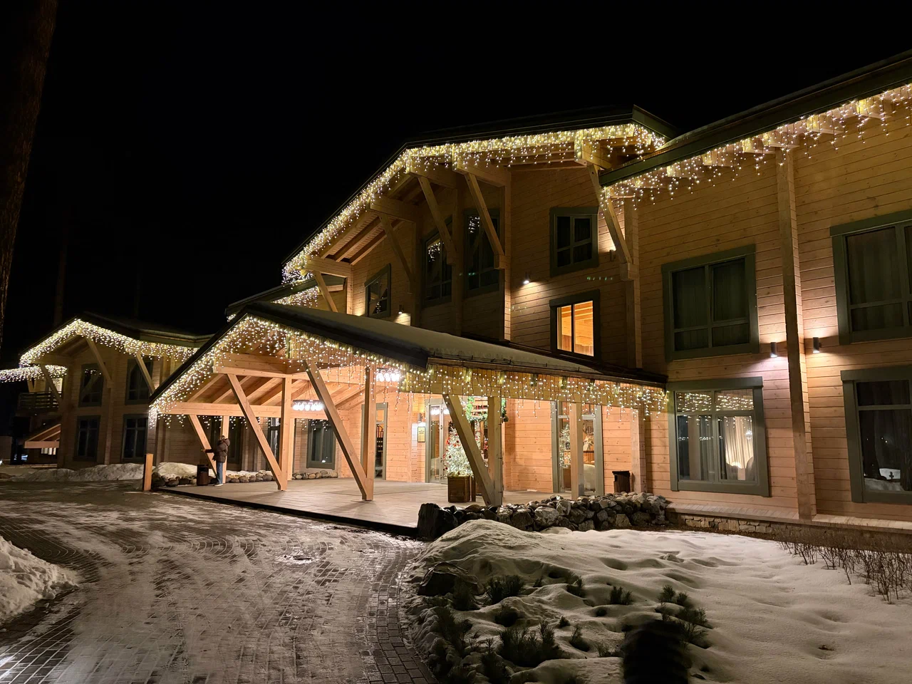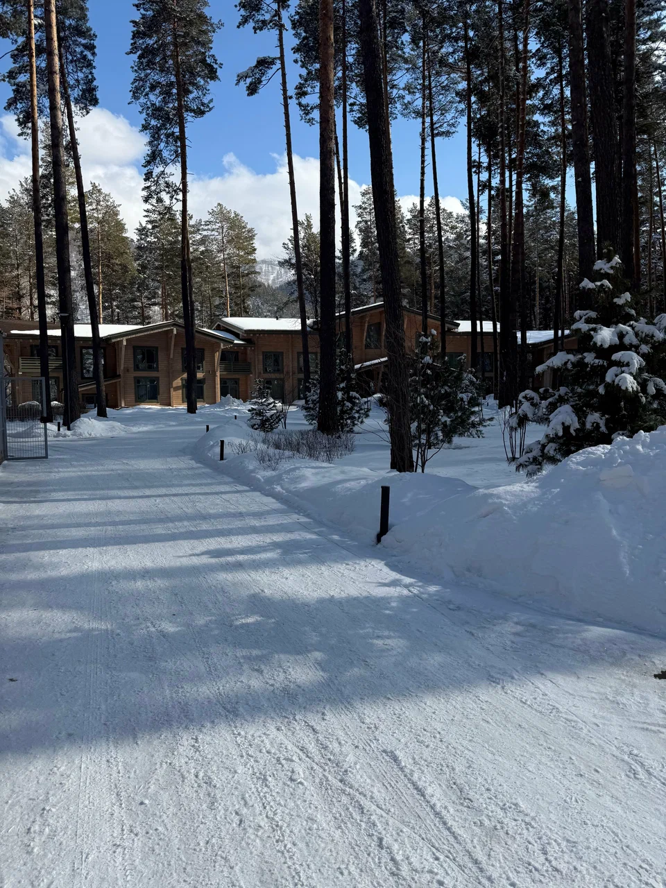 Единственный минус который встречается во многих отелях это слышимость. Деревянные шале и звукоизоляция конечно страдает. Мы жили в удачном номере 102, у нас не было никаких соседей по бокам, это крайний номер и от других номеров ещё отделяла служебная лестница, но под конец отдыха заселились на втором этаже вот тут мы ощутили присутствие соседей, топот бегающих детей и голоса. Поэтому берите беруши и спите спокойно. Стоимость нашего номера была 15000 в сутки, летом будет дороже. Также рядом нет ресторанов магазинов, надо брать такси или машину заказывать отеля и выезжать. Мы не ездили никуда не хотелось. По дороге с Манжерока заезжали в продуктовый магазин, просто просили водителя и он любезно выполнял просьбу.