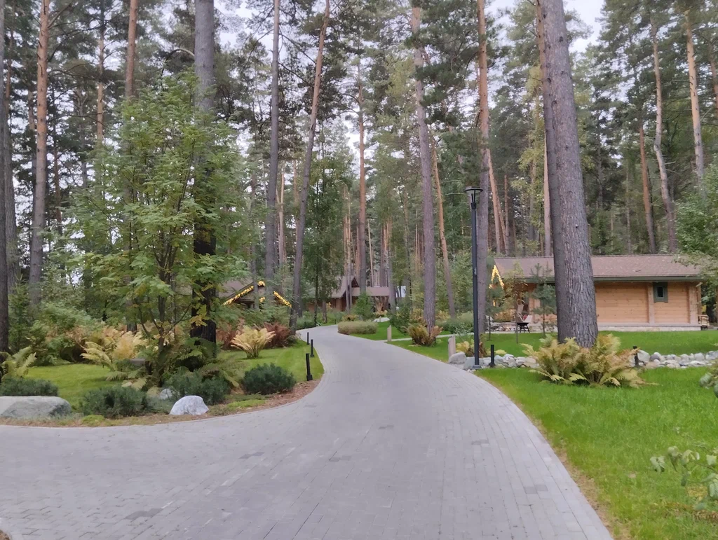 Живописная территория отеля словно сказочный лес, сосновый живой воздух, журчание Катуни