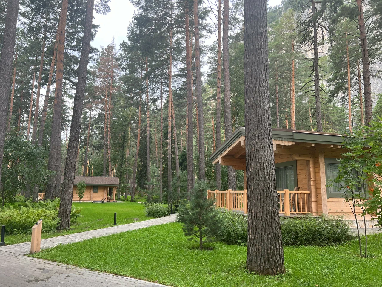 Территория очень красивая. Собственник разместил строение максимально не тронув лес и растения. Дома уютные и чистые. Кухня шикарная. Шеф повар знает свое дело. Бассейн на территории - это как вишенка на торте. Персонал приветливый, всегда с улыбкой.