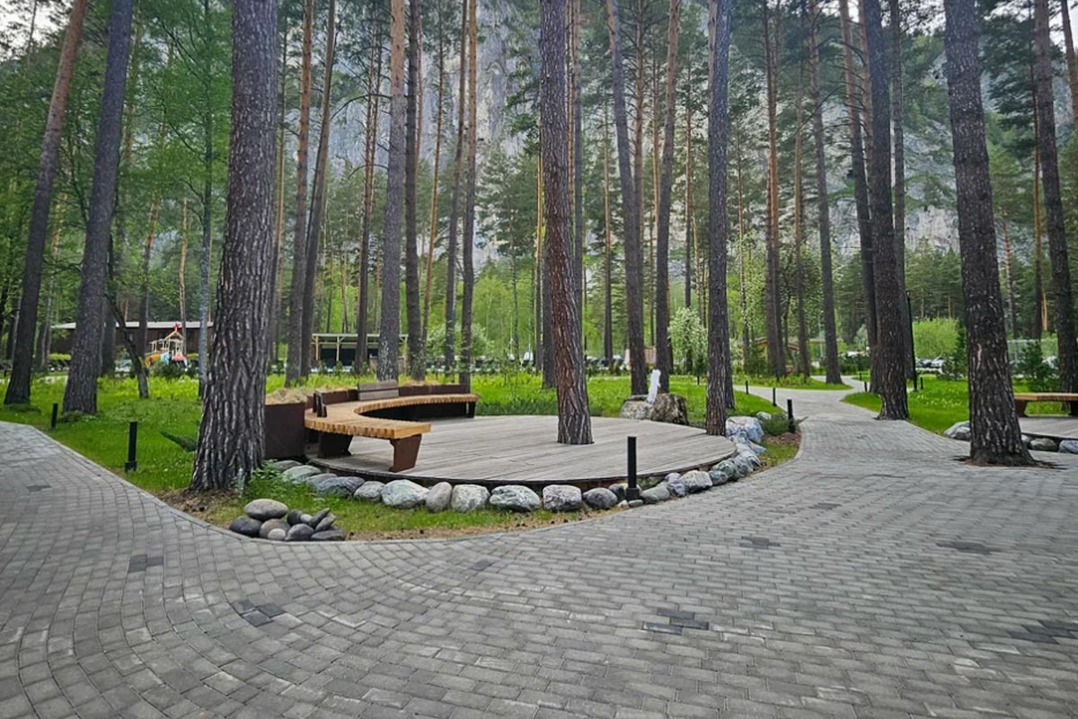 6. Территория отеля очень большая. С одной стороны граничит с рекой Катунь. С другой стороны - высокие скалы с неимоверным видом! Обустроены широкие пешеходные дорожки , обустроены места для «посидеть у речки» с возможностью пожарить шашлык или просто посидеть вечером у костра.