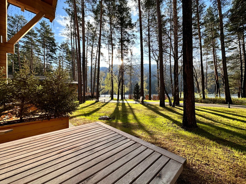1. Красивая большая ухоженная территория, птички поют, выходишь на улицу и понимаешь, что ты на Алтае- лес, горы, вода. В сравнении, рядом построили Манжерок Сбер (там живешь как в каменных джунглях, а у Вас природа